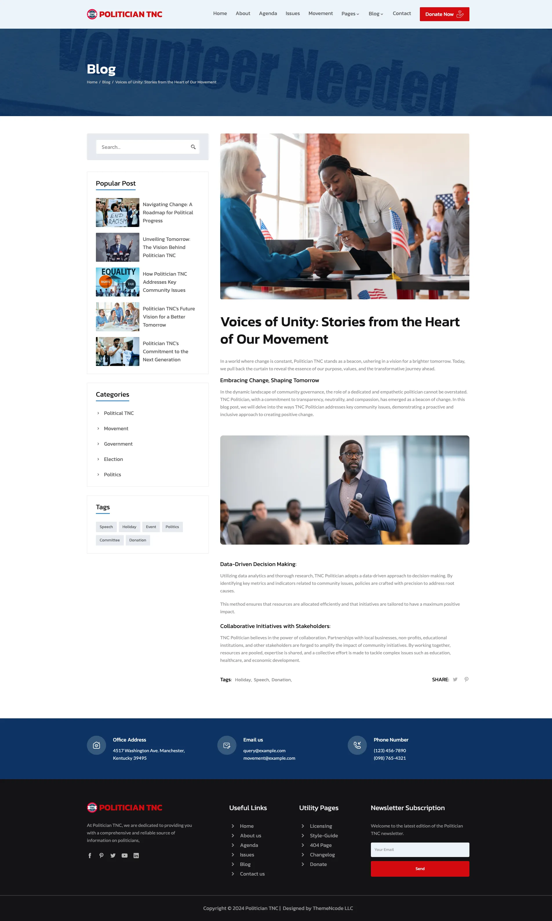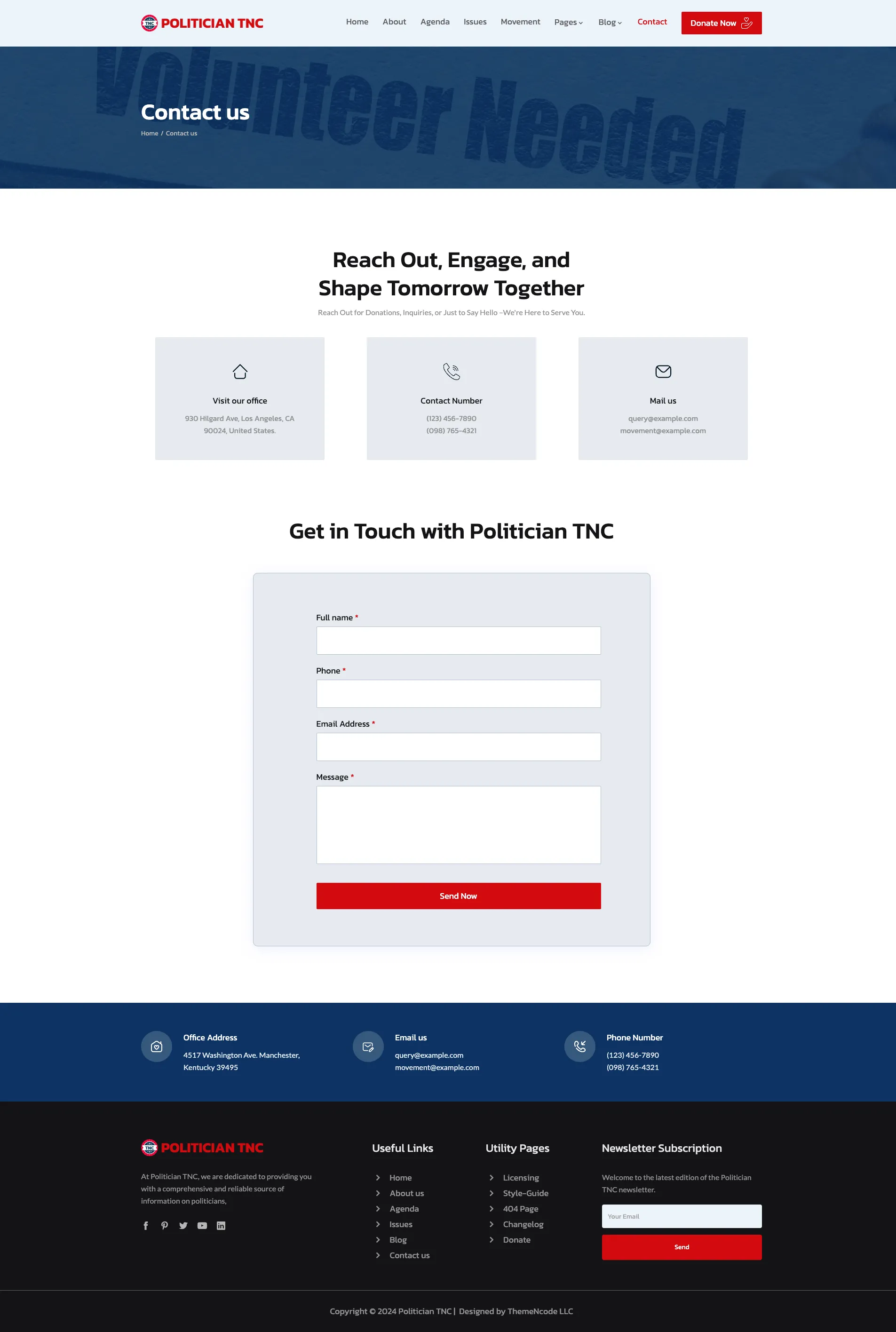 Newsletter form is essential to generate leads for your business. Politician TNC has an amazing newsletter form.