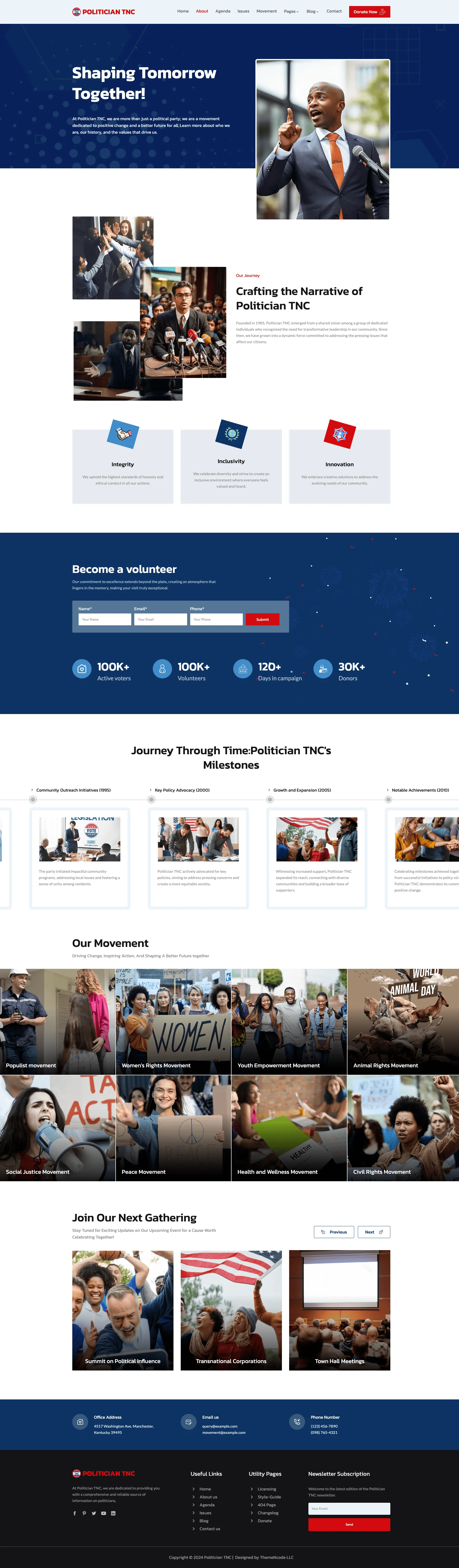 Empowering politicians to showcase their campaigns and engage with supporters effectively. Politician TNC is a complete solution.