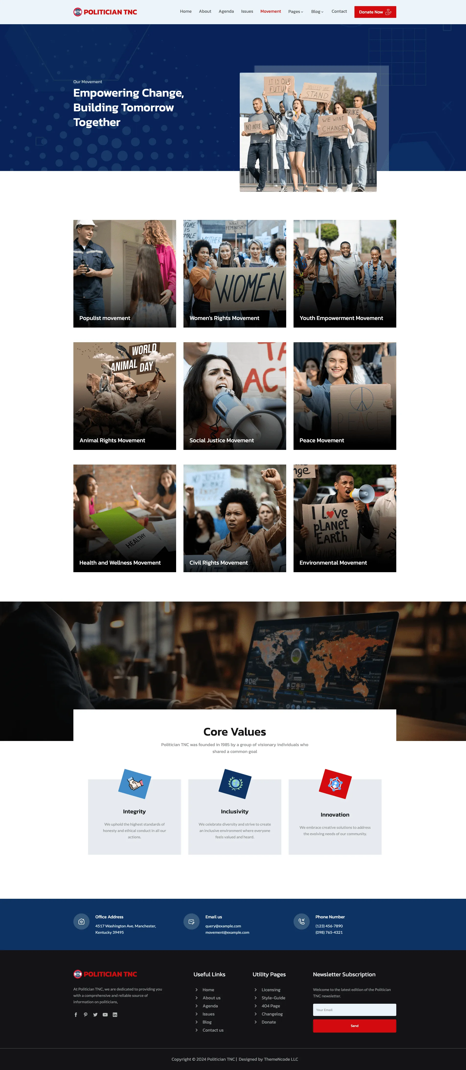 Enhance your political campaign's online presence effortlessly with this HTML Political Template. Designed for politicians, this template simplifies communication and engagement, allowing you to share your vision and connect with voters easily.